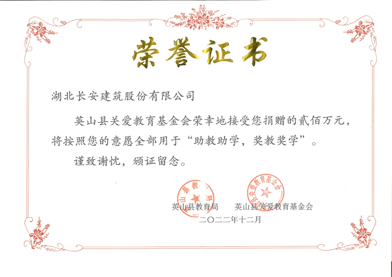 公司向英山縣關(guān)愛教育基金會捐贈200萬元