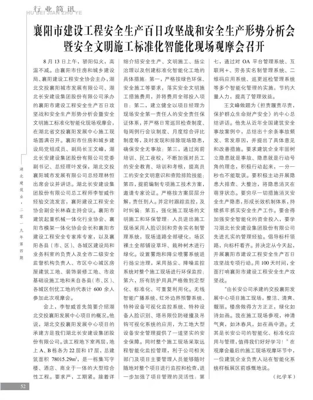 襄陽市建設(shè)工程安全生產(chǎn)百日攻堅戰(zhàn)和安全生產(chǎn)形勢分析會暨安全文明施工標準化智能化現(xiàn)場觀摩會召開