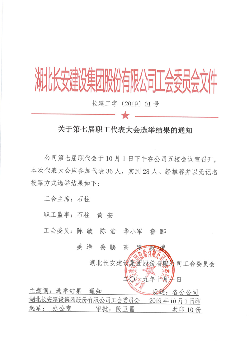 關于第七屆職工代表大會選舉結(jié)果的通告